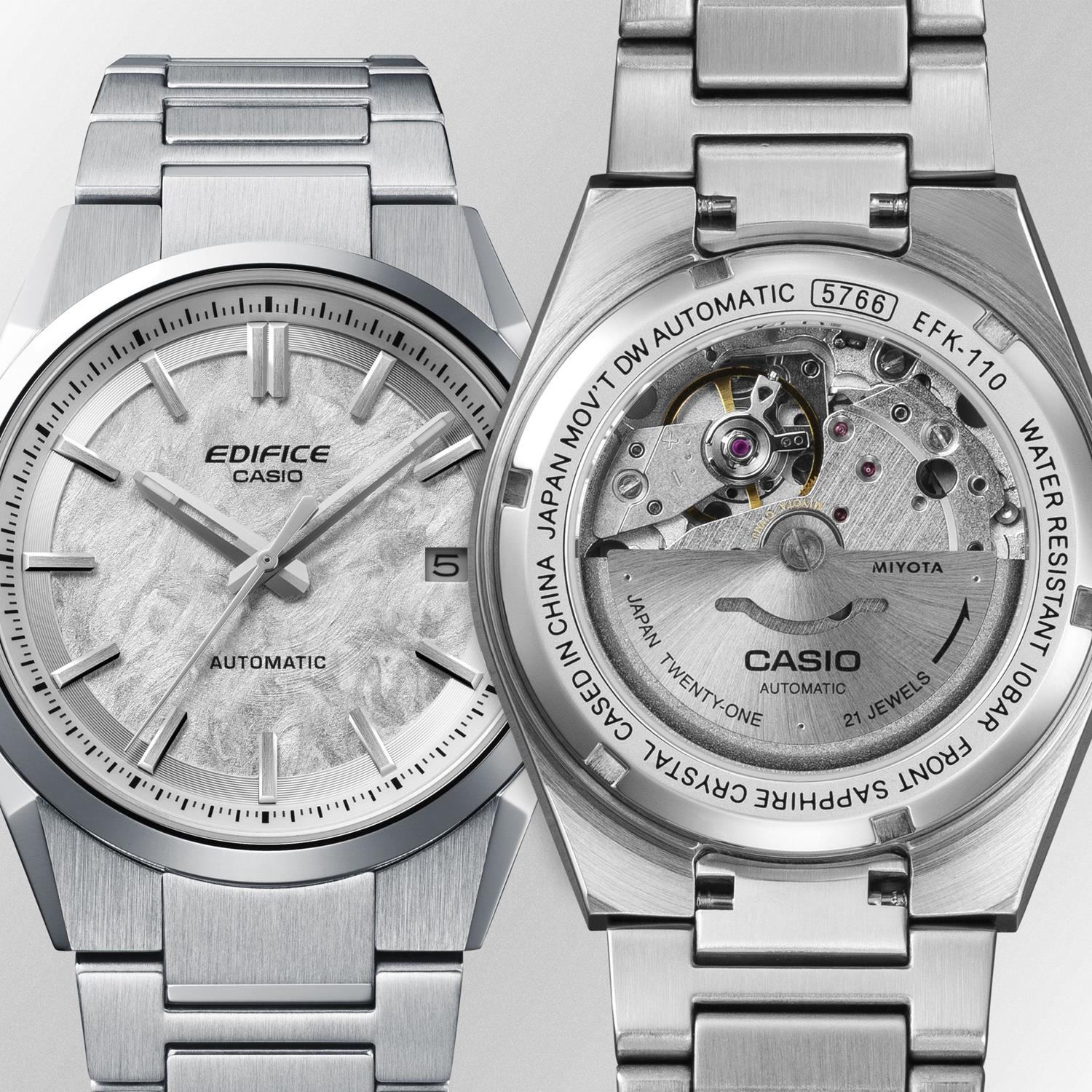 あえてロゴを排した、引き算の美学。ミニマルメタル「G-STEEL GST-B1000」 G-SHOCKのメタル外装ライン<G-STEEL>から、新たなデザインコードを示す“GST-B1000”が登場。 ブランドロゴをあえてベゼルから排し、造形と仕上げだけで “G-SHOCKらしさ” を語る一本。直線と曲線の磨き分け、ヘアラインとミラーのコントラスト、文字板の幾何学パターンが奥行きを演出。タフソーラー/Bluetooth®(CASIO WATCHES連携)/20気圧防水など、日常使いに必要な実用機能も搭載。 Point 1|ミニマルメタルの意匠 ロゴを排したベゼル。面の切り替えと磨き分けが光を受けて表情を変え、腕元を端正に。 Point 2|メタル×耐衝撃構造 メタル外装でありながらG-SHOCKらしいタフネスを確保。日常からビジネスまで幅広く。 Point 3|スマート機能 アプリ連携で時刻自動修正/ワールドタイム設定などが簡単。視認性の高いアナログダイアル。 デザインハイライト Minimal, Metal, Balance....