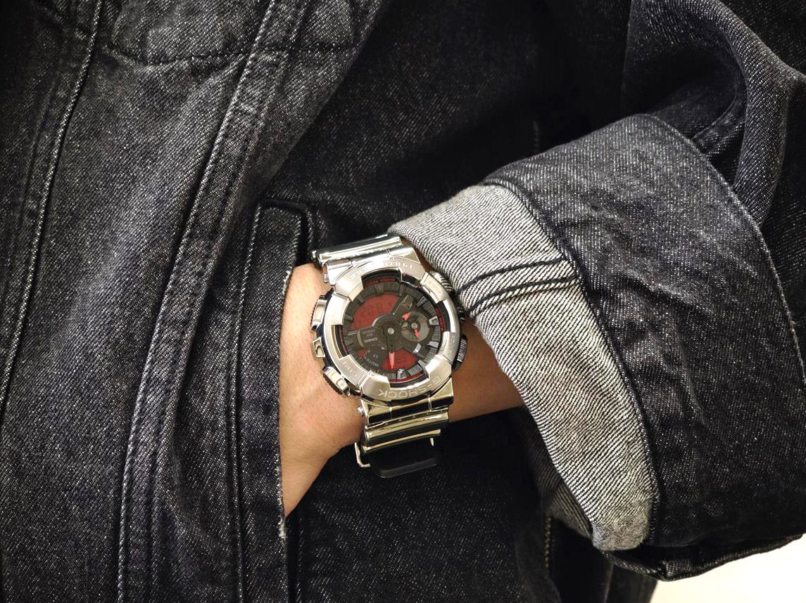 | 時代と共に進化を続け、世界中のファッショニスタやアスリートから愛されているIconic Stylesから、メタルベゼルと大胆なカラーリングを融合させた「FINE METALLIC SERIES」です。ベースモデルには、異彩を放つビッグケースモデルのGM-110を採用。ステンレススチール製のベゼルは、部位ごとにヘアラインとミラー仕上げの磨き分けを施し、質感を高めました。