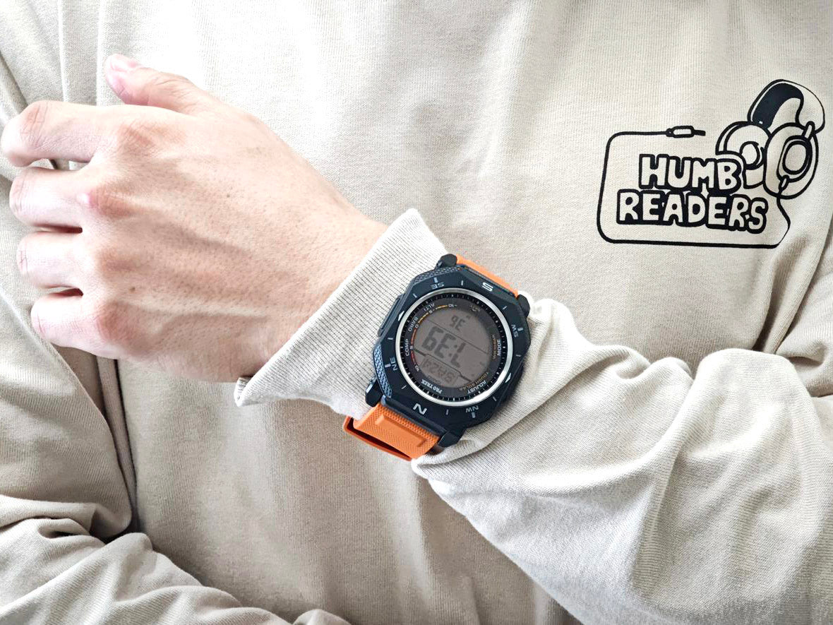 | 本格アウトドアギアPRO TREKから、ソーラー搭載モデル「Climber Line PRG-69」が登場。デジタルライン初の角型ケースを採用した革新的なモデルで、無骨なアウトドアギアをイメージしたデザインは、従来の丸型とは一線を画す新しい表情を演出します。コンパクトサイズながら存在感のあるフォルムが、軽装備でのアウトドア活動にマッチします。