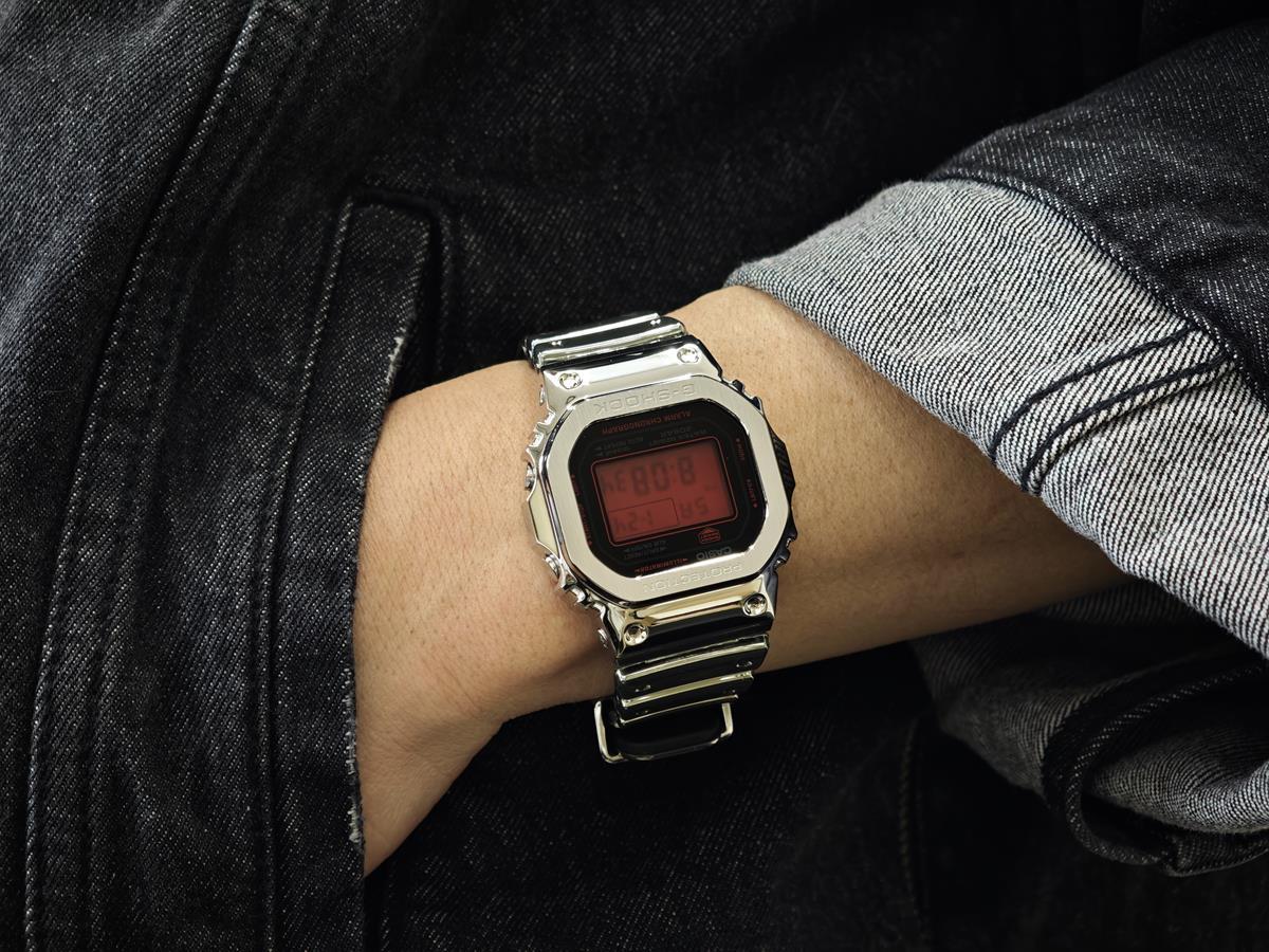 | 時代と共に進化を続け、世界中のファッショニスタやアスリートから愛されているIconic Stylesから、メタルベゼルと大胆なカラーリングを融合させた「FINE METALLIC SERIES」です。ベースモデルには、初代モデルを受け継ぐ定番デジタルのGM-5600を採用。ステンレススチール製のベゼルは、部位ごとにヘアラインとミラー仕上げの磨き分けを施し、質感を高めました。