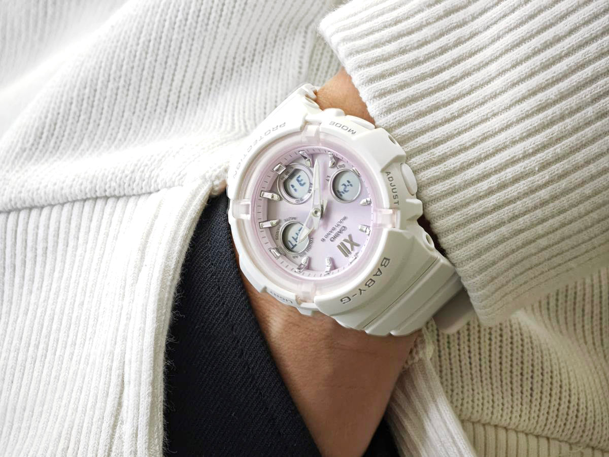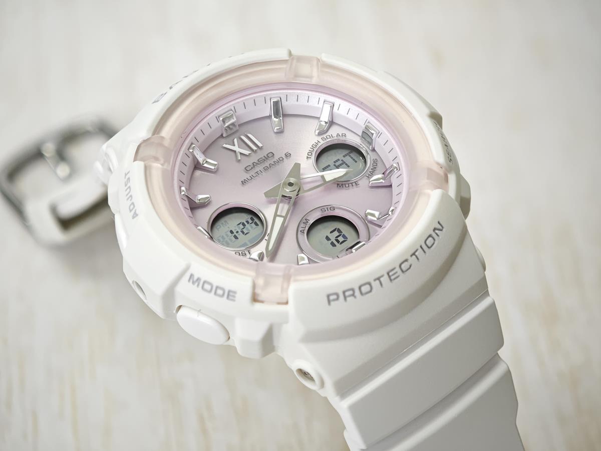 | アクティブな女性に向けた耐衝撃・カジュアルウオッチBABY-Gから、新生活を迎えるフレッシャーズや大切な人に贈るギフトにぴったりの「スプリングパッケージ」です。ホワイトとピンクを組み合わせた爽やかなカラーリングで、新しい季節の訪れを表現しました。 機能面では、耐衝撃構造や10気圧防水、世界6局の電波を受信するマルチバンド6、ワールドタイム、タフソーラー等、日常生活からレジャーまで頼れる機能を備えています。 パッケージには小物の収納にも便利なオリジナルのポーチが付属。新しい環境でがんばる方に向けたスペシャルモデルです。 |