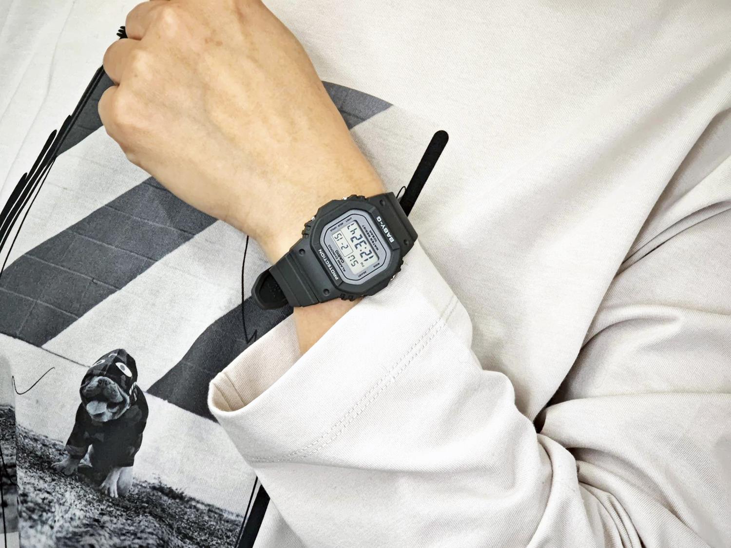 アクティブな女性に向けた耐衝撃・カジュアルウオッチBABY-Gから、バレエコアスタイルを取り入れた、光沢感のある文字板が特徴のモデルです。