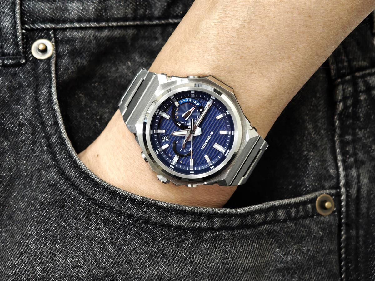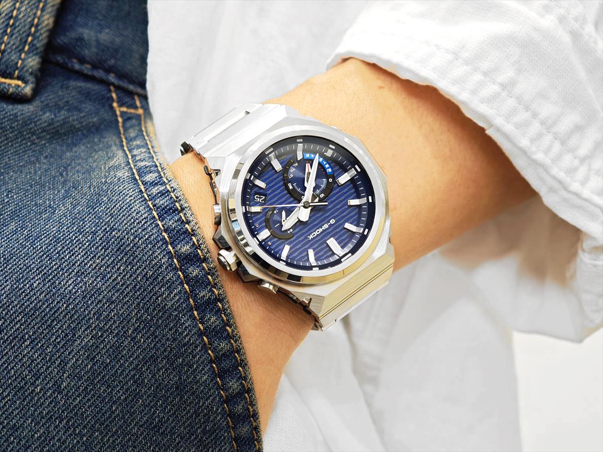 「GST-B1000D-2AJF」— G-SHOCKのタフネス構造と機能美を受け継ぎつつ、研ぎ澄まされたミニマルな表現で再構築したSLEEK STYLEです。 ロゴを排したベゼルは光の角度で表情を変え、豊かな質感を演出。ステンレススチール製バンドはヘアラインとミラーの磨き分け、三つ折れ式中留は端正なデザインと高いホールド感が魅力です。 初号機“DW-5000C”から継承したベゼルデザインやレンガパターンがスポーティさを加味。 メタルベゼルが衝撃をガードし、カーボンファイバー強化樹脂ケースがモジュールを保護。ガラス接着方式や小型モジュールにより耐衝撃構造を実現しつつ薄型・軽量化を両立しました。 ビジネスからカジュアル、アウトドアまで、多くの瞬間に対応できるオールラウンド・タイムピースです。 |