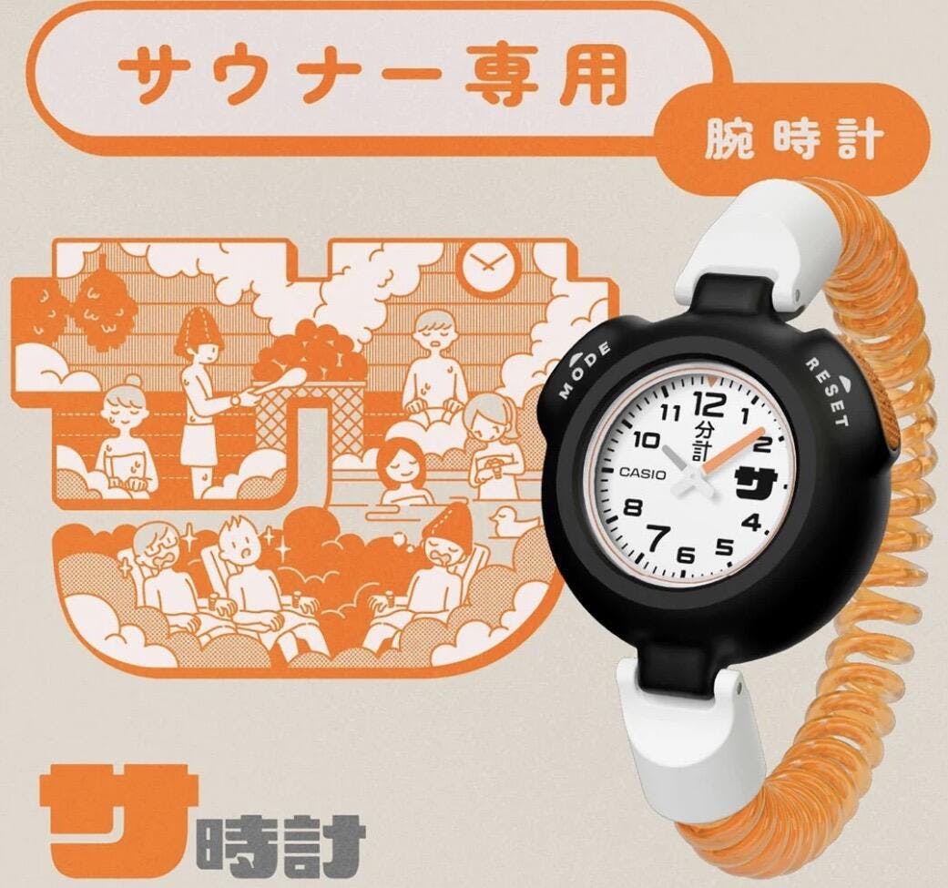 | CASIO サ時計 SAN-100H-7BJR | サウナ専用 腕時計 サウナ用腕時計をお探しのサウナーやサ活ユーザーに。CASIO サ時計 は、ワンプッシュで サウナモード(12分計)と時刻表示を切替。入室時はRESETで0:00にリセットし、 自分だけのサウナサイクルに集中できます。 サウナ想定の耐熱電池、低透湿樹脂ケース/裏蓋、無機ガラスで熱と湿気に配慮。 5気圧防水で日常使いも安心。サウナタイマー代わりに直感操作でととのう時間をキープ。 主なポイント ・薄暗いサ室でも見やすいシンプル文字板+蓄光針 ・12分計(分・秒)+リセット/MODEで時刻と12分計の切替が可能 ・水風呂OK(水中でのボタン操作は不可)で外気浴の時間管理にも ・ロッカーキー着想のデザイン/伸縮カールバンド(ギフトのサウナグッズにも) 注: 設定温度は100度Cまで、腕に着けた状態で15分以内の使用を想定。 注: 急冷後にガラスが曇る場合がありますが、数分で消える場合は故障ではありません。 注: 蓄光の明るさ・持続時間は光の当たり方で変動します。 関連ワード: サ活/サウナー/サウナ用腕時計/サウナタイマー/12分計/外気浴/ととのう/サウナグッズ |